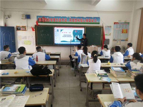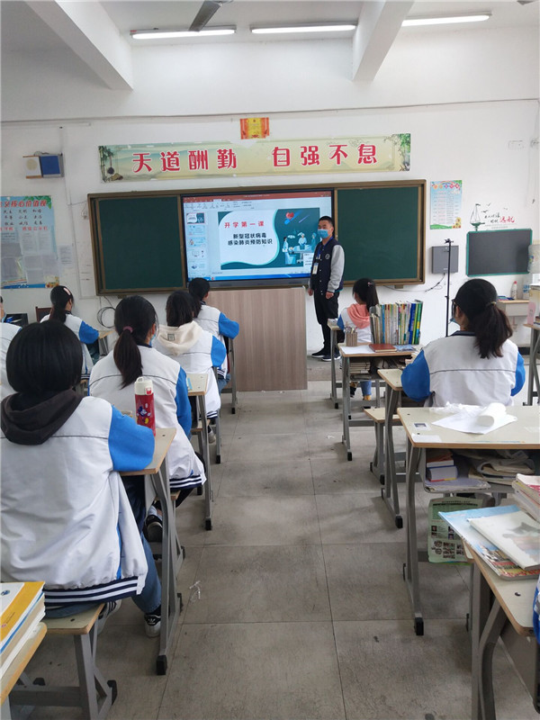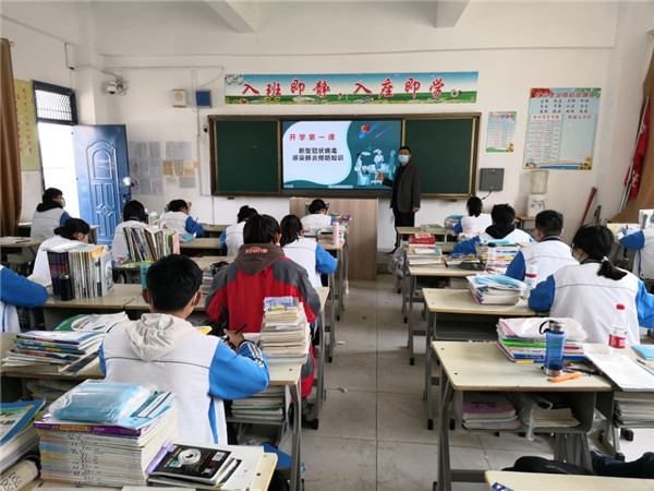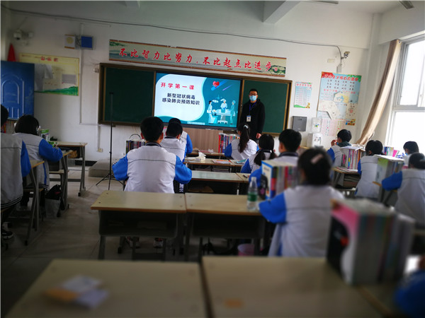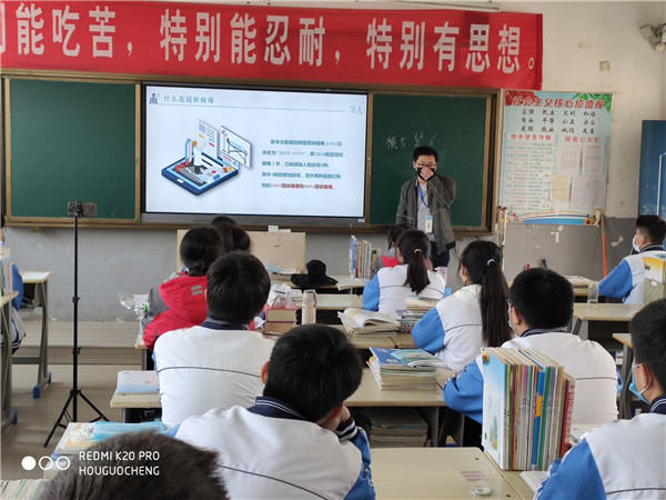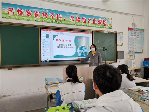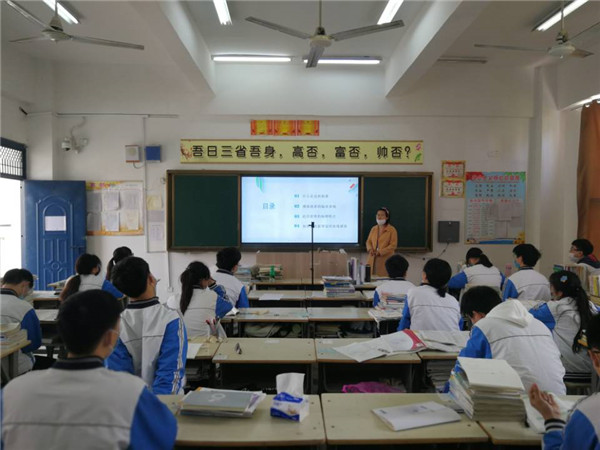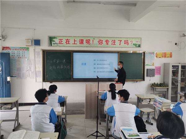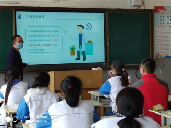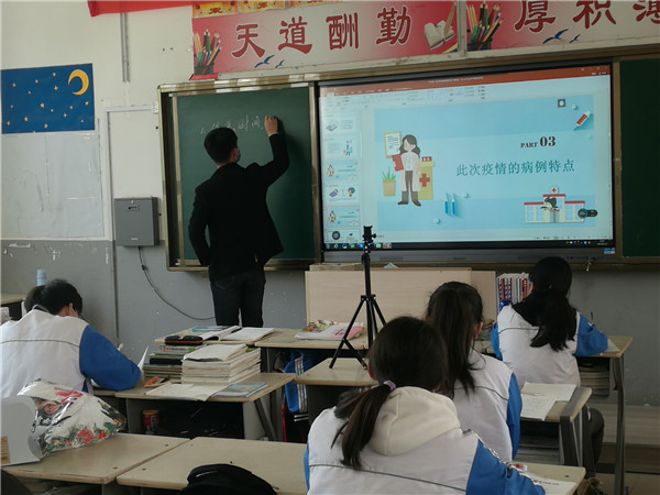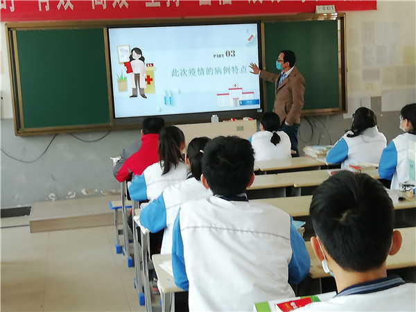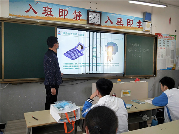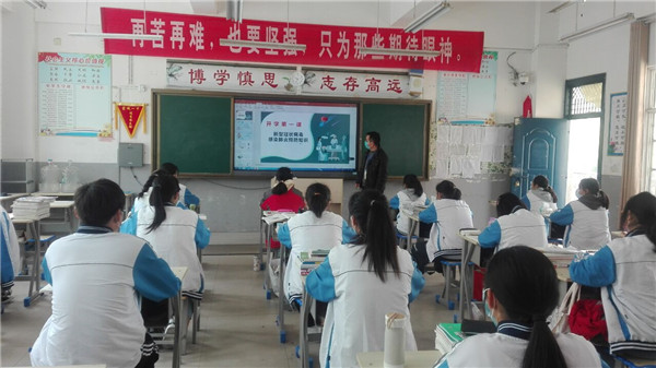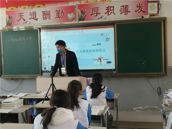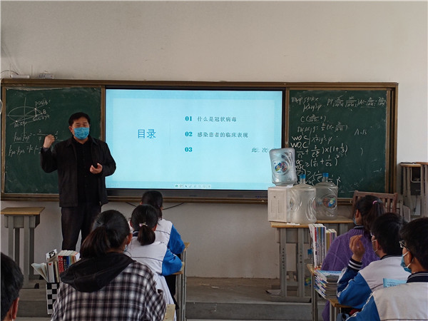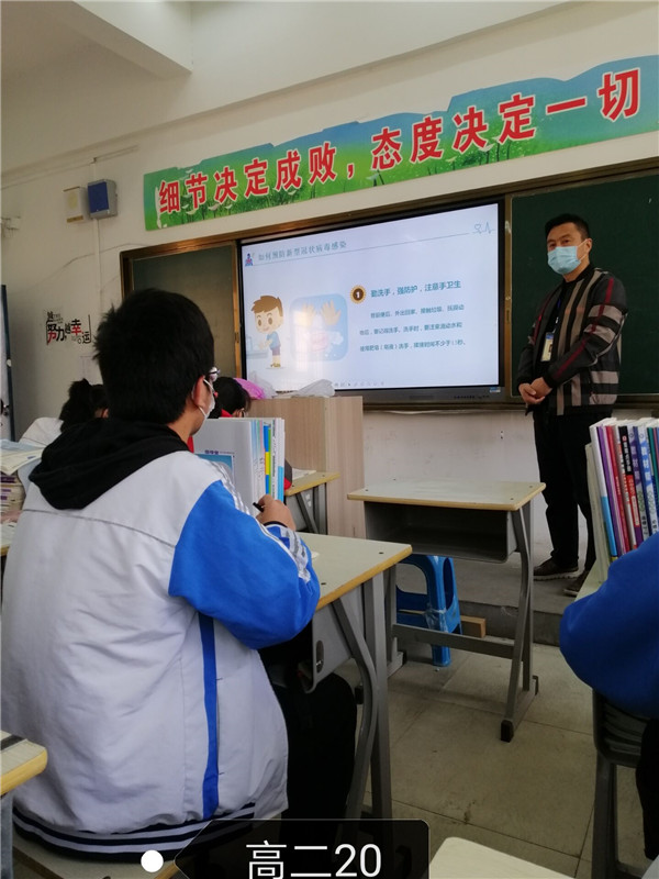 班主任通过对新冠肺炎病毒进行科普,介绍全国抗疫行动,师生返校防护,要求同学们加强防控,从疫情中学习和反思,保持乐观向上的精神,在接下来的时间里,用努力成就更好的自己。