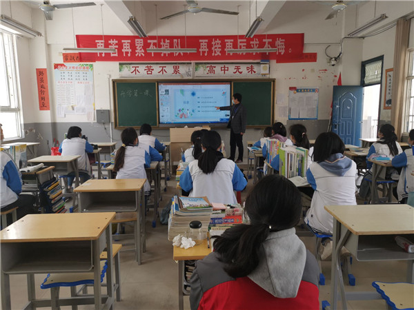 4月22日上午,蒙城一中举行了高二年级复学的“开学第一课”主题教育活动。学校通过开学第一课主题教育,利用疫情这本现实教材,对学生进行了爱国主义教育、生命教育、科学教育、理想信念教育,并对学生复学后的疫情防控和一日常规进行规范指导。