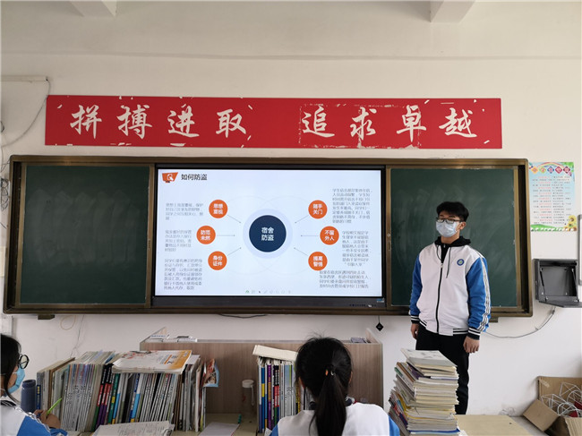 4月20日,高二高三的师生们开展了“校园安全知多少”主题班会活动,师生们制作了图文并茂的PPT,积极宣传,各抒己见。刘亚老师从如何防盗,如何防骗,如何防火,人身安全,交通安全五个方面向同学们介绍了校园安全的防范。姜信哲同学则主要是从宿舍安全这个角度切入,提出具体措施,让同学们获益良多。