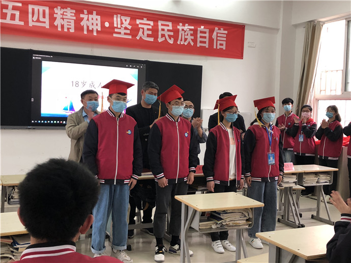 宣誓后,由在座的师长为成年学生佩戴“成人帽”,送上“成人礼”。