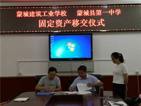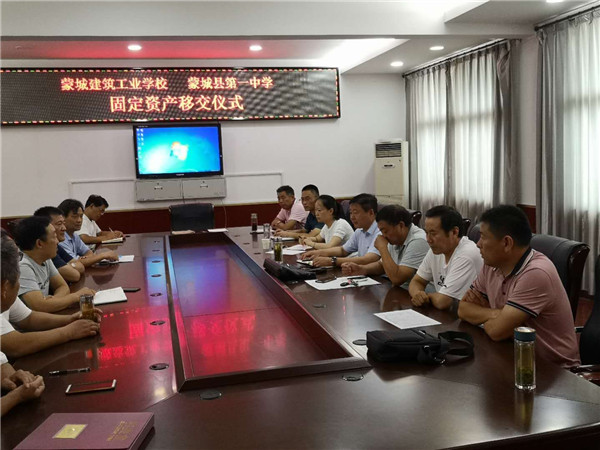 我校与蒙城建筑工业学校举行固定资产移交仪式 来源:本站原创 作者:未知 发布时间:2020-08-09 10:40:36 浏览次数: 次 字体:小 大 打印 分享到: 8月7日上午,根据县委县政府安排,我校与蒙城建筑工业学校固定资产移交仪式在蒙城建筑工业学校(原四中)举行。蒙城一中校长杨景泰及相关负责人毕清华、曹建峰、蔡少卫、刘文永等、蒙城建筑工业学校领导以及县教育局相关部门领导参加了会议和移交签字仪式。 扫一扫在手机打开当前页