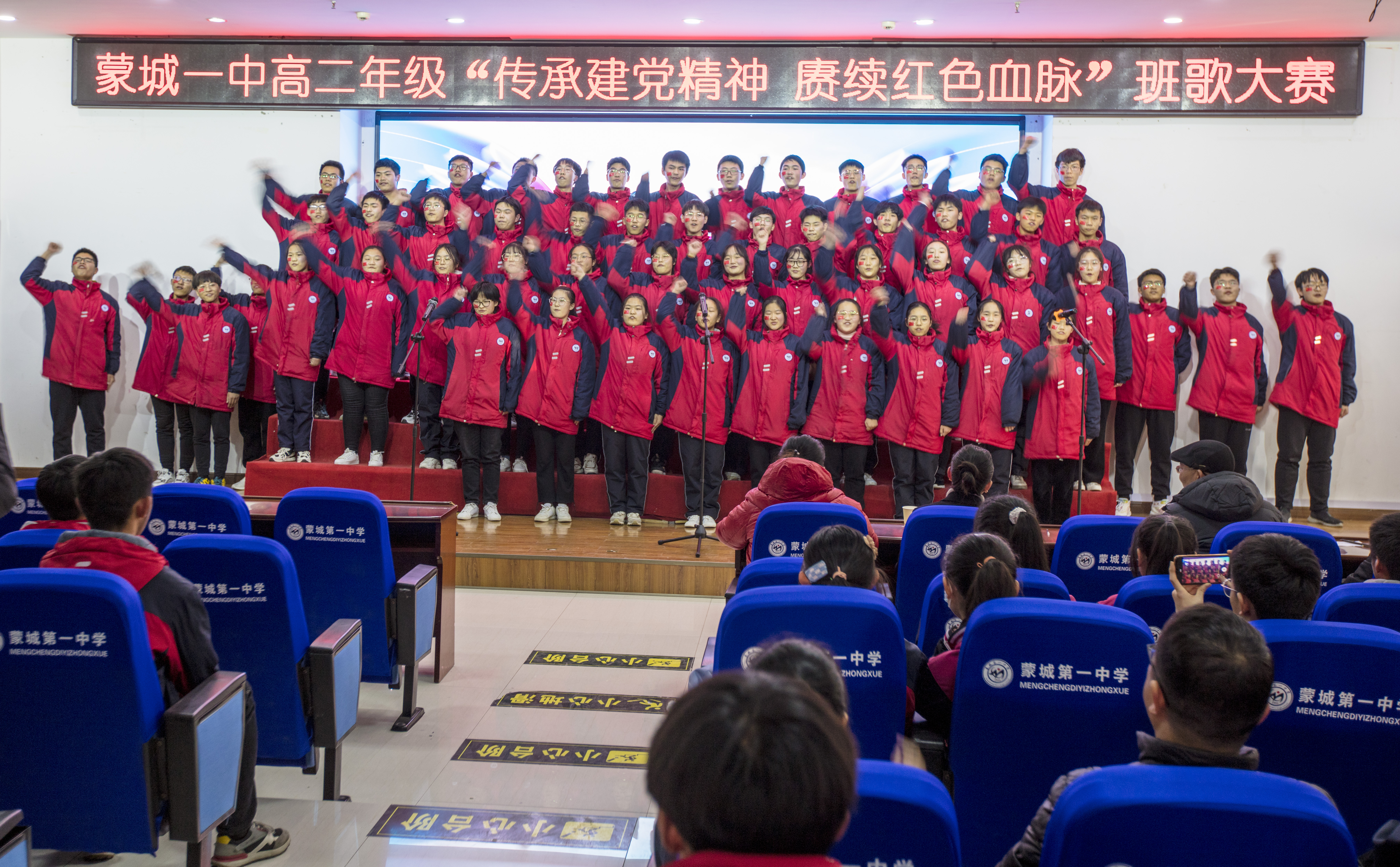 传承建党精神 赓续红色血脉——蒙城一中举行高二年级班歌比赛 作者:hm 发布时间:2021-12-05 16:30:09 浏览次数: 次 字体:小 大 打印 分享到: 为庆祝中国共产党成立100周年,深入推进党史学习教育走深走实,12月4日,蒙城一中2020级高二年级开展红色教育系列文化活动——“传承建党精神 赓续红色血脉”班歌大赛,用青春向上、积极进取的歌声唱出对党和国家的热爱与祝福。 班歌大赛的开展,旨在引导各班通过比赛增强了班级的凝聚力和向心力,实现了以美育人的目的;同时引导同学们勇担强国使命,唱响红色之音,传承建党精神,赓续红色血脉。 扫一扫在手机打开当前页