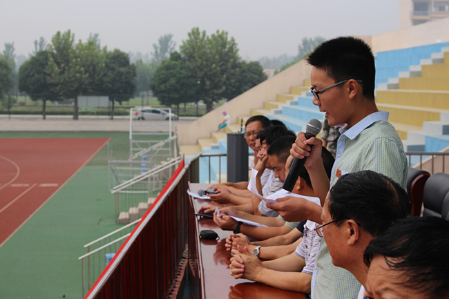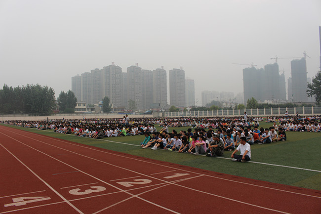 8月25 日上午7点半在我校南校区运动场内2014级高一新生军训动员大会准时举行,在动员会上马腾飞校长做了重要讲话,他首先代表学校欢迎同学们的到来,对同学们的高中生活及军训做了几点重要要求,他鼓励同学们要有吃苦耐劳的精神,坚定信心,积极乐观,勇于挑战,认认真真的完成此次军训任务,为高中生活打下一个良好的基础。校党委书记袁少华,校党委委员王超、王晓东、刘蒙一同出席大会,会议由政教科科长郏勇主持。