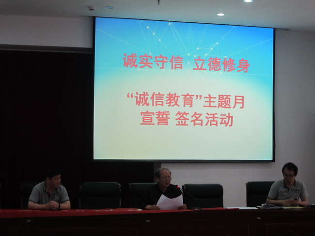我宣誓:“诚信为本,立德修身;身为学子,诚信为要;诚信做人,诚信做事;以真诚之心,行信义之事;以真诚之行,扬信义之名;我诚信,我快乐!我诚信,我青春!”
