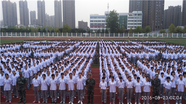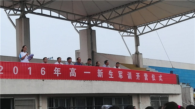 2016级高一新生军训开营仪式 作者:郏勇 发布时间:2016-08-23 15:43:53 浏览次数: 次 字体:小 大 打印 分享到: 今天上午7点在蒙城一中体育场进行了2016级高一新生军训开营仪式,宣告我校2016年七天的军训开始了。主席台就座的有县武装部周副部长、校党委书记袁少华、副校长王超、校长助理丁亦工、校长助理刘蒙、政教科长郏勇、年级主任蔡少卫、外请主任医师夏主任、仪式在激昂的国歌中举行,由王超副校长主持,会上有学生代表、教官代表表态发言,几位领导作了重要讲话,医师夏主任告诫学生军训时注意事项。 扫一扫在手机打开当前页
