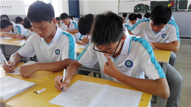 2016级新生入学教育进行第一次测试 作者:郏勇 发布时间:2016-08-24 20:42:43 浏览次数: 次 字体:小 大 打印 分享到: 今天下午3:00至3:45 是高一新生针对这两天的入学教育内容,进行了进行了第一次测试,本次考试连同七天军训中的后面两次入学教育的考试成绩将合并纳入综合素质评价的量化分中。 同学们在认真答题 各中队指导员们在仔细批阅试卷 扫一扫在手机打开当前页