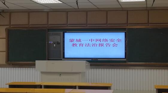在司法局的支持下,我校邀请何燕铭律师在录播室对高一(1)班学生作了以网络安全知识为主题的专题讲座,其余班级在教室内收看网络直播。