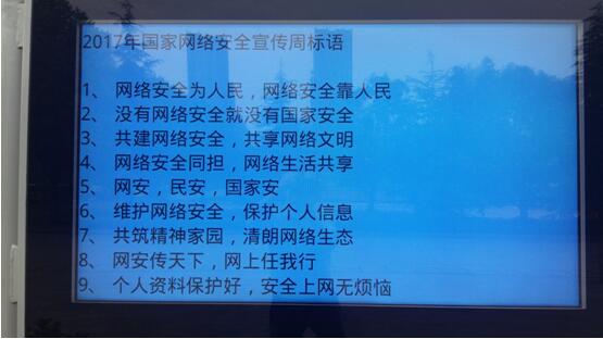 二、 利用电子屏以滚动字幕的形式播放2017年网络安全宣传周标语。
