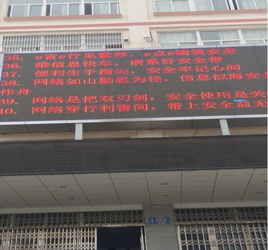 分别在综合楼大屏幕和A楼前广场小屏幕上编辑50条标语进行滚动播放。