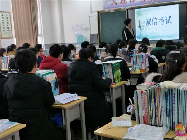 高二年级开展“诚信学习,诚信考试”主题班会 发布时间:2018-12-19 11:15:11 浏览次数: 次 字体:小 大 打印 分享到: 为严肃考风考纪,督促学生认真复习迎考,蒙城一中高二年级各班于月考前夕开展了以“诚信学习,诚信考试”为主题的班会,旨在引导学生诚信学习、诚信考试。 各班利用多媒体等教学手段,宣传诚信的重要性,通过诚信小故事、诚信案例,培养学生诚信的良好道德品质,并号召同学们从身边的每一件小事做起,实事求是,重信用,守承诺。 扫一扫在手机打开当前页