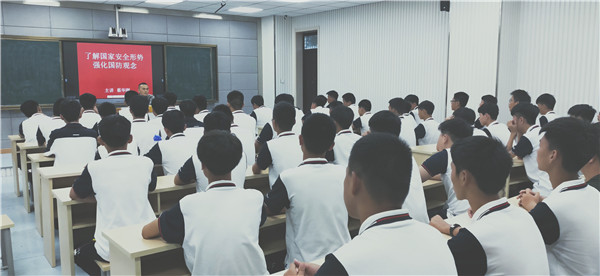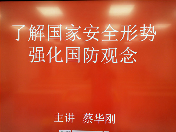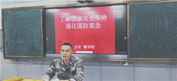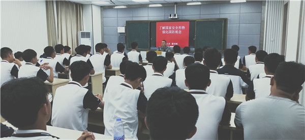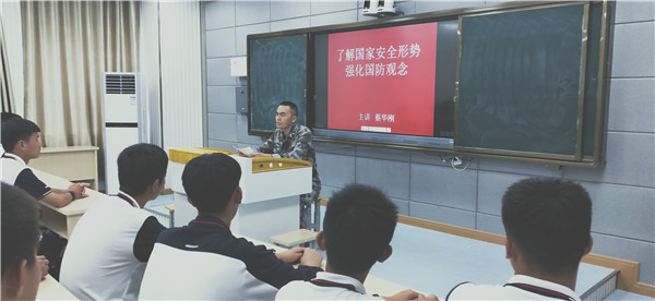 县人民武装部蔡华刚同志运用丰富的军事知识和大量史实,从“我国特殊的地缘环境及其对国家安全产生的影响”、“我国周边环境的新变化”和“应对周边复杂安全环境的对策措施”等方面进行了精彩讲解,让同学们了解了当前国际、国内的复杂形势。整个讲座旁征博引,数据翔实,观点敏锐,既有清晰的历史脉络,又有具体事件的介绍,同时还分析了当前国际关系热点中美关系和当前局势,在同学中引起了强烈共鸣。讲座中,同学们表现积极,特别是在问答互动环节,许多同学争相发表自己见解,气氛热烈。