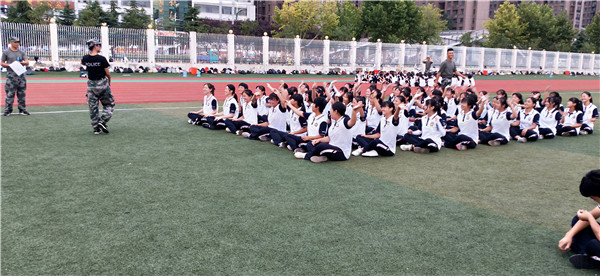 同学们迎来了军训的第六天,早晨的阳光洒落在每个同学的身上,充满干劲儿的同学们在经过五天的训练后队伍显得愈发整齐,动作也愈发干净利落。完美地完成常规训练任务后短暂休息,各班同学们开始了拉歌,每个班的同学都不甘示弱,歌声配着口号震耳欲聋,响彻校园的每个角落!