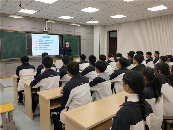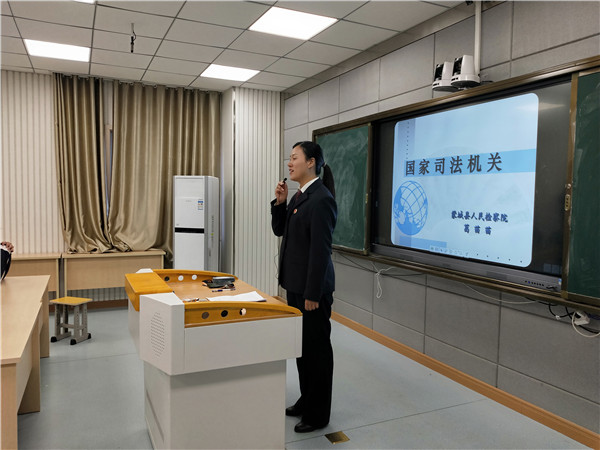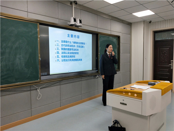 法治课堂:国家司法机关 来源:本站原创 作者:张士锋 发布时间:2019-11-20 18:19:55 浏览次数: 次 字体:小 大 打印 分享到: 11月20日,蒙城县人民检察院检察官葛苗苗在蒙城一中普法宣传室为我校学子开展法治讲座。 检察官准备充分,用生动形象的语言结合着图片视频对我国司法的起源、发展及司法的构成体系作了详细的论述,同学们专心听讲,对我国的司法体系有了一个全新的认识。 扫一扫在手机打开当前页