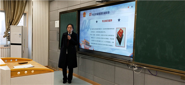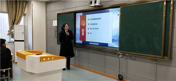 法治课堂:宪法学习解读 来源:本站原创 作者:张士锋 发布时间:2019-12-04 18:07:12 浏览次数: 次 字体:小 大 打印 分享到: 12月4日下午是,县人民检察院魏雯检察官到蒙城一中普法教育基地为蒙城一中学子详细解读了宪法。 通过讲解宪法法律知识,简析具体未成年人犯罪案例,增强了学生对宪法的了解,帮助学生树立守法观念,增强安全防范意识及未成年人保护意识。 扫一扫在手机打开当前页