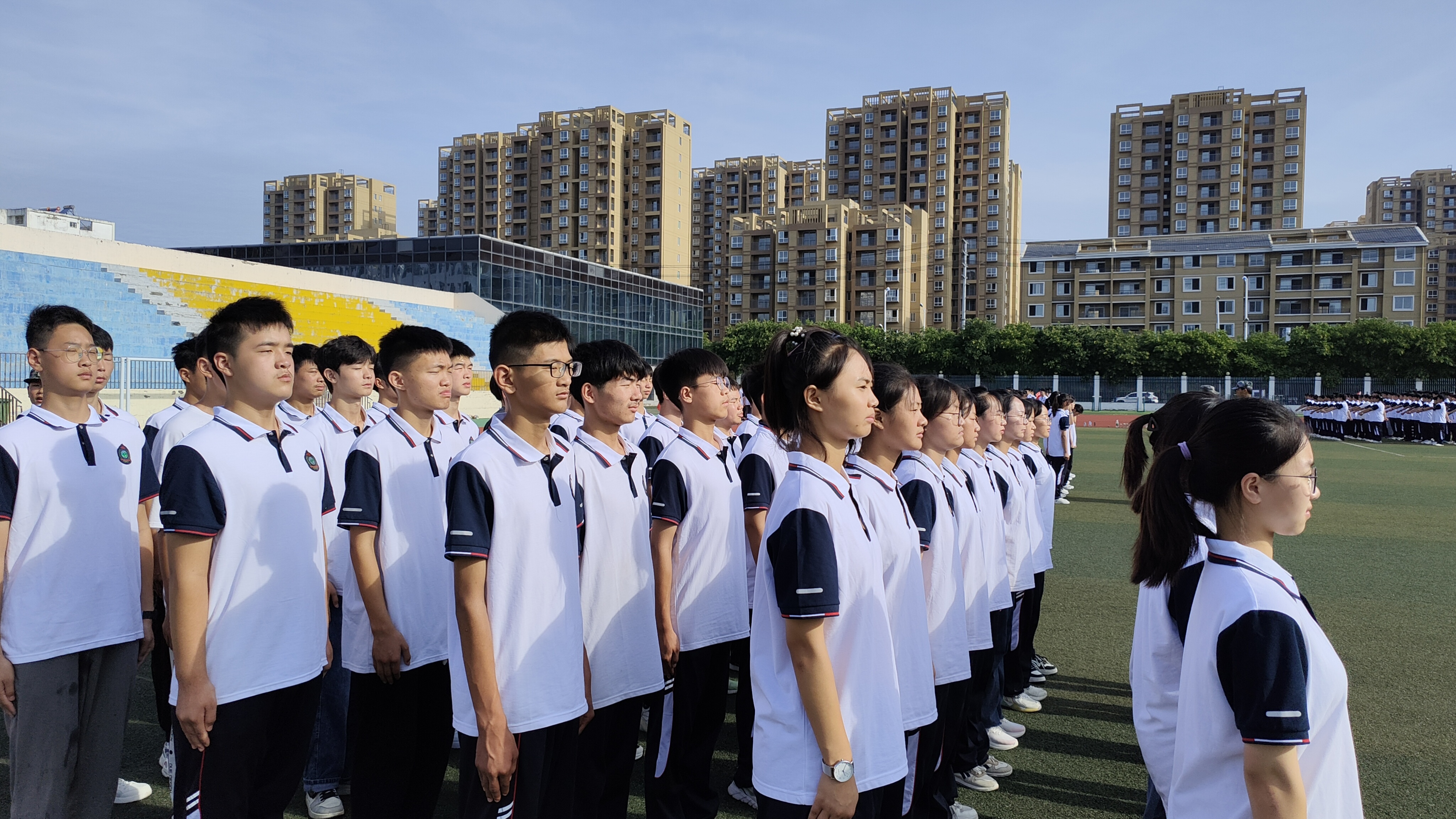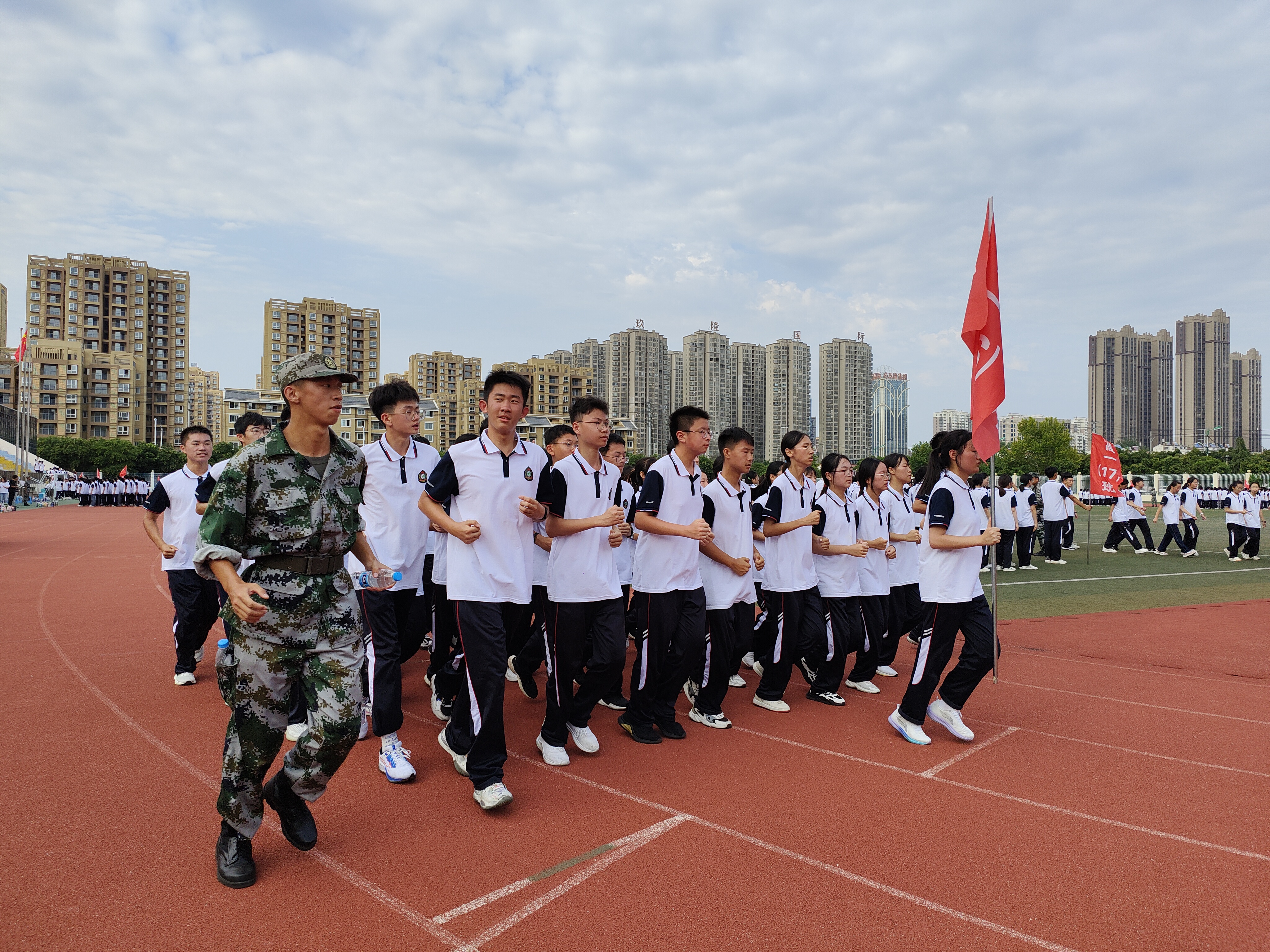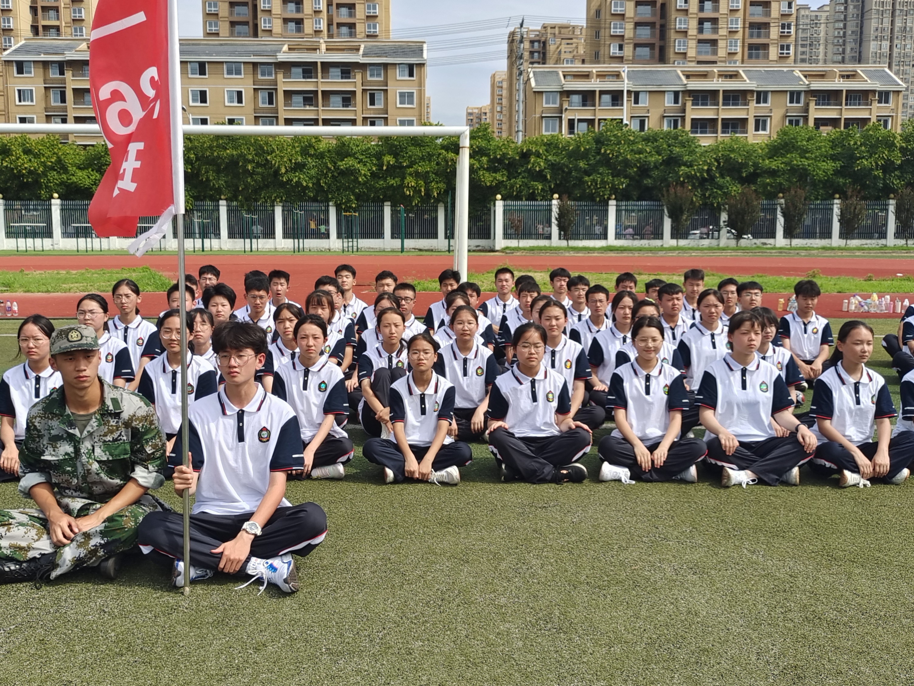 蒙城一中2022级高一新生军训简报(第三期) 发布时间:2022-09-30 10:30:37 浏览次数: 次 字体:小 大 打印 分享到: 2022级高一新生军训活动已进行至第3天,同学们热情高涨,继续走进训练场进行军训操练,立正、稍息、蹲下、站军姿、向右看齐、向前看、向右转、向左转、向后转、跑步走、敬礼、礼毕,同学们抓住动作要领,认真做好每一个动作。通过标准的队列训练,同学们既可以亲身感受并切实体验现代军人整齐划一和严格正规的队列生活,更能培养良好的身姿,建立良好的时间观念、组织纪律观念、集体观念和讲求规范、雷厉风行的作风。 扫一扫在手机打开当前页