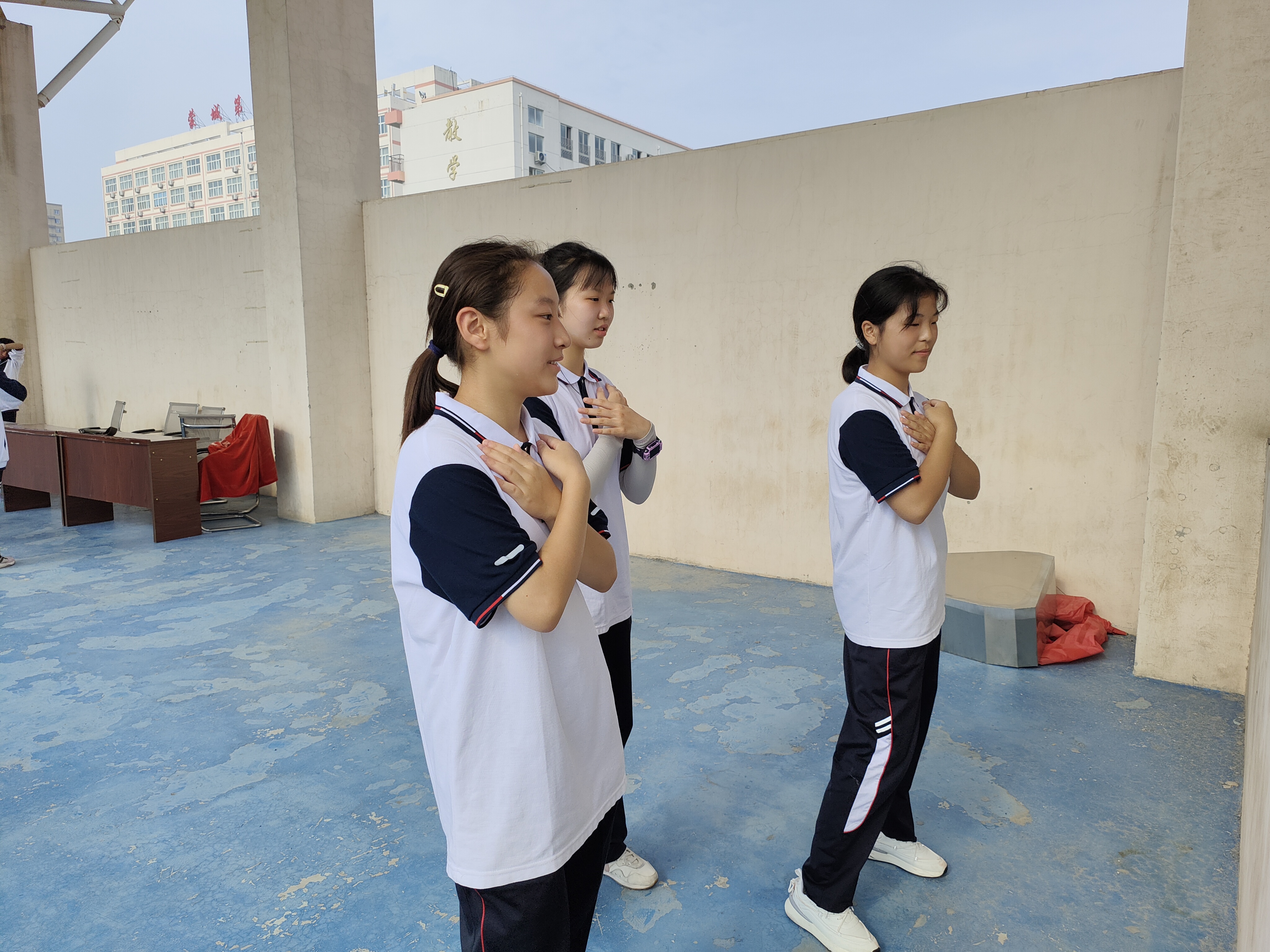 花絮:休息时间,女教官单独指导领舞学生学习舞蹈动作,同学们学得很认真。