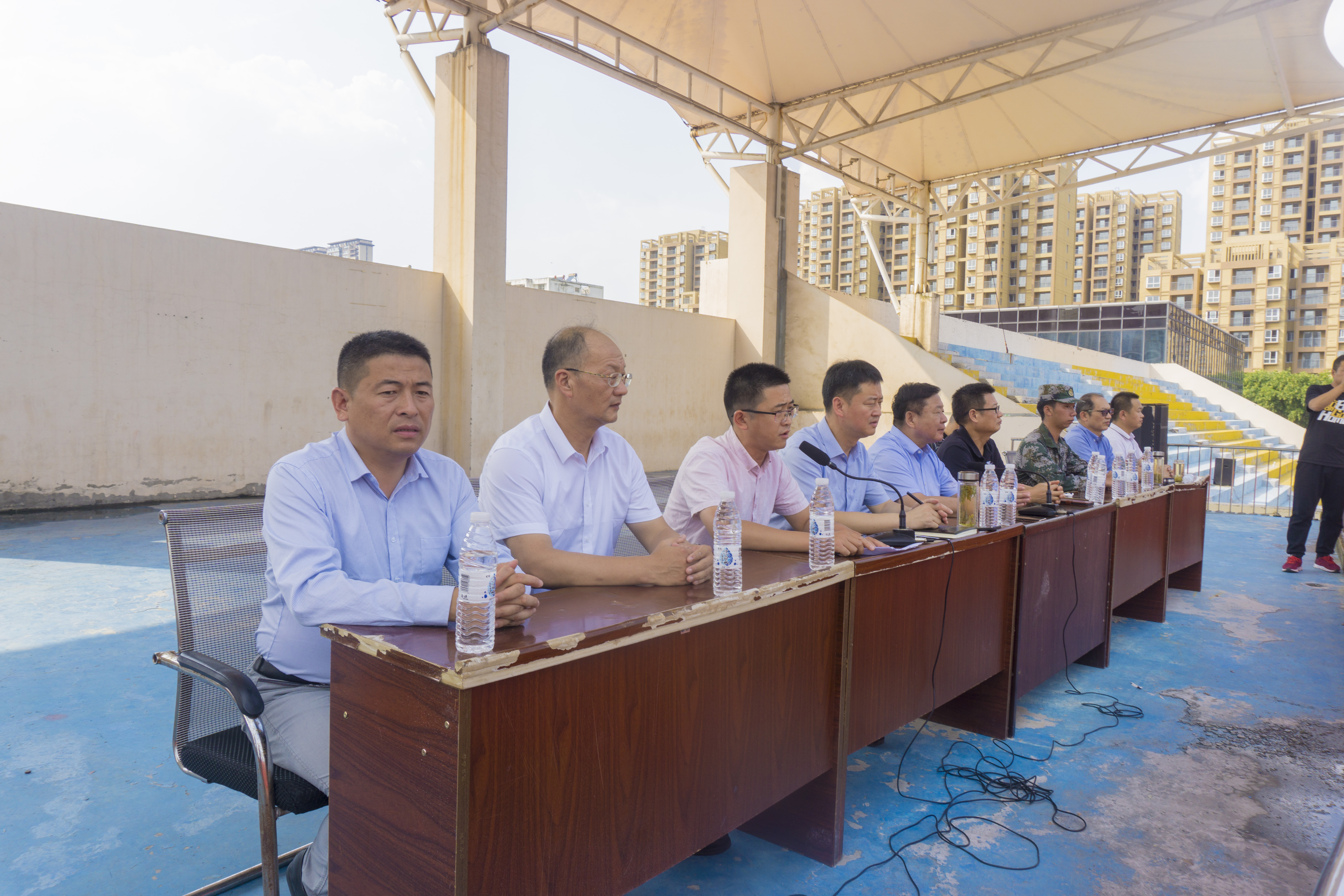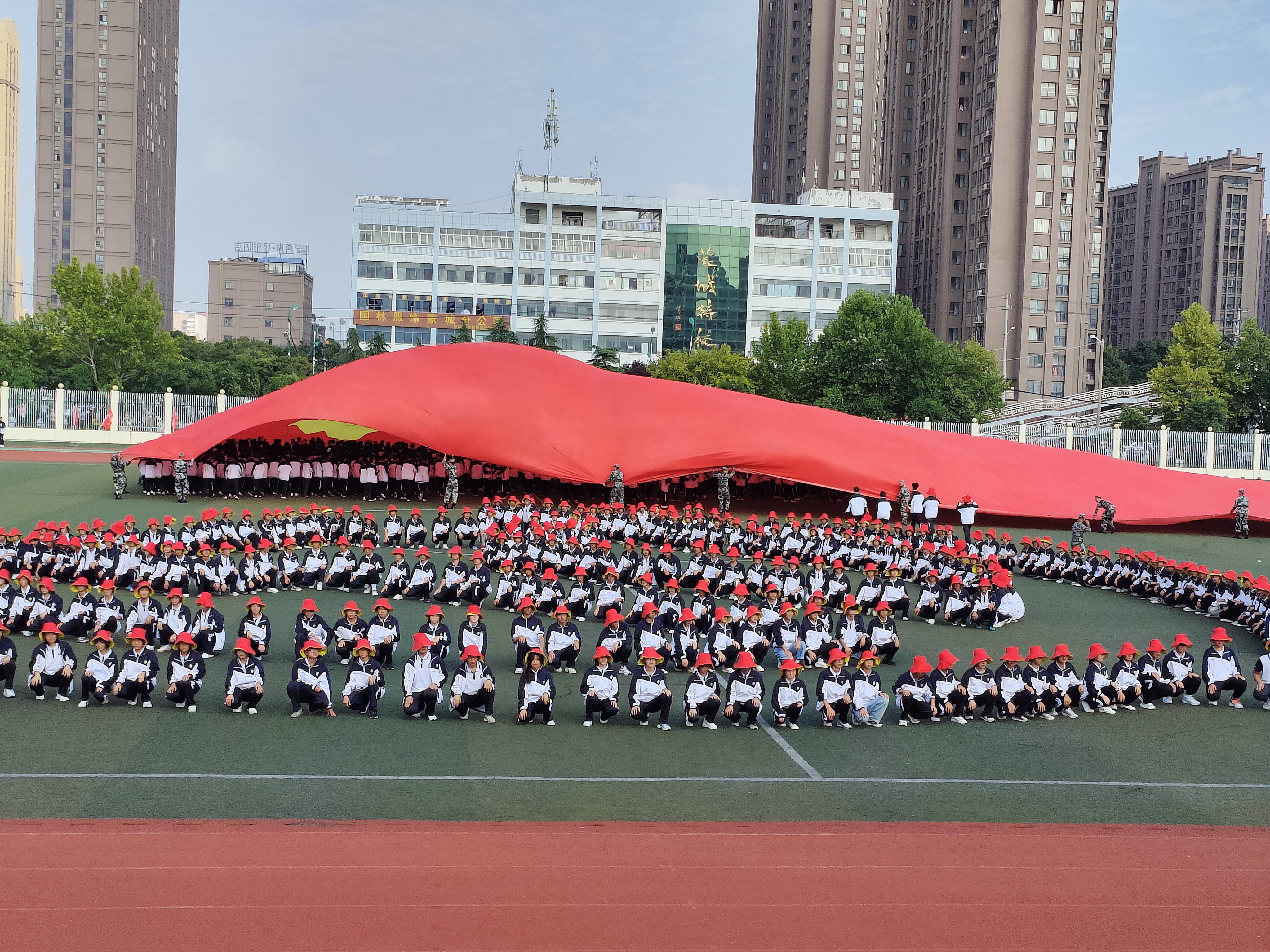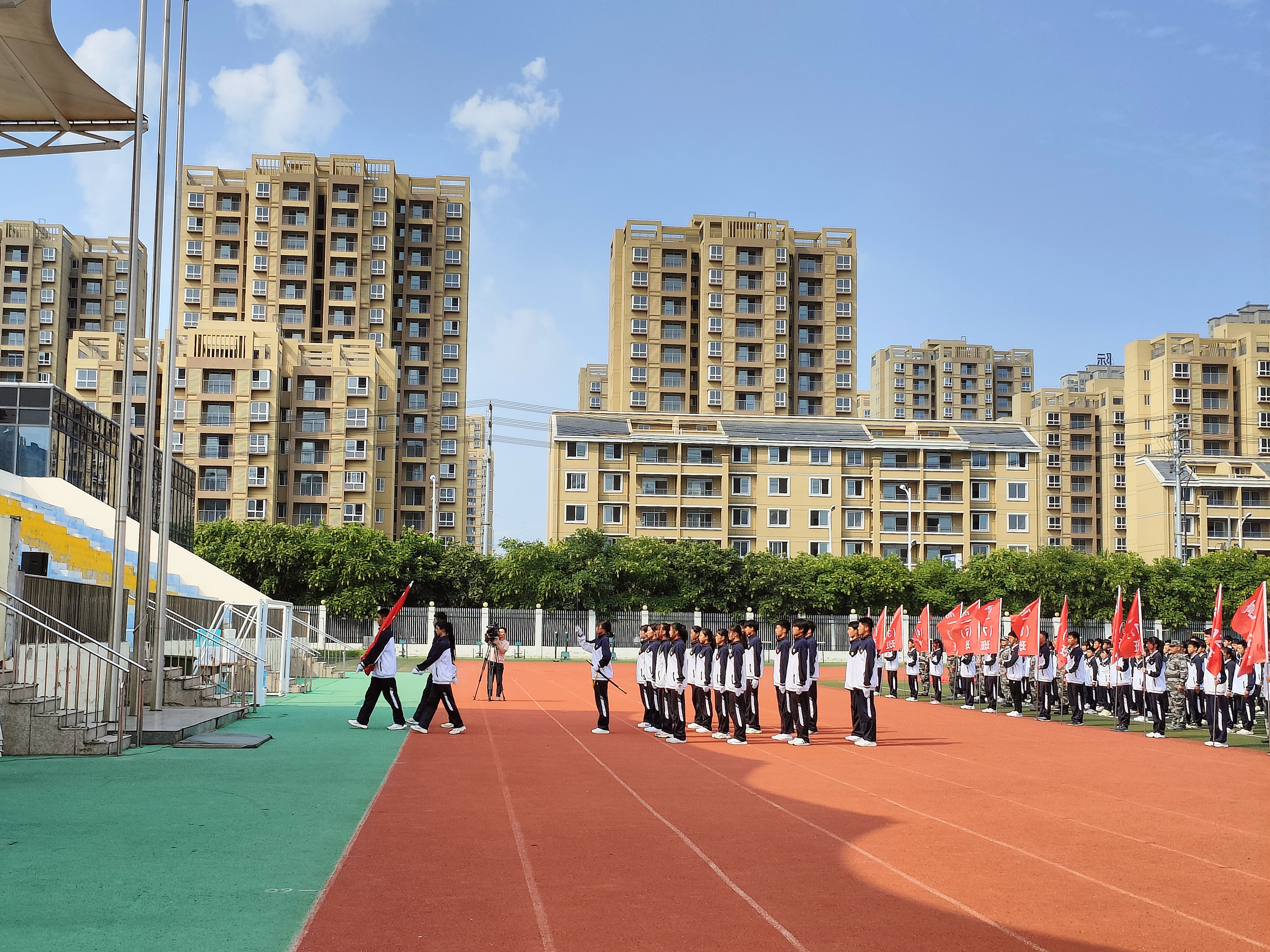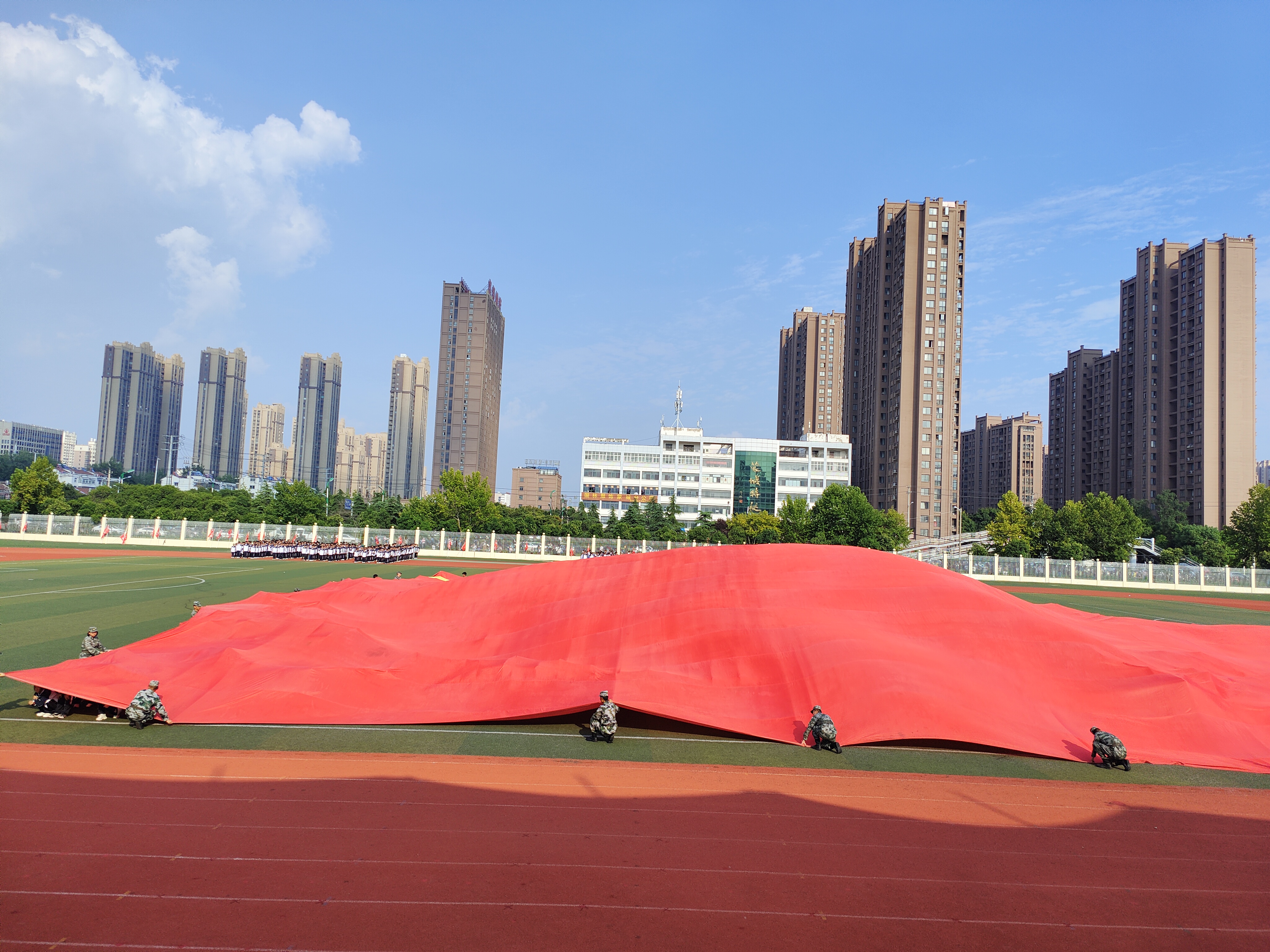 升完国旗后教官队长请示校长,蒙城一中党委书记、校长杨景泰批准同意军训总结汇报大会开始。