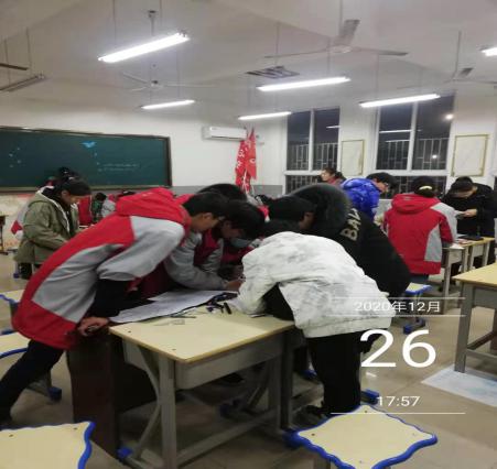 6点40分 制作英语手抄报活动圆满结束,指导教师整理教室,打扫活动场所