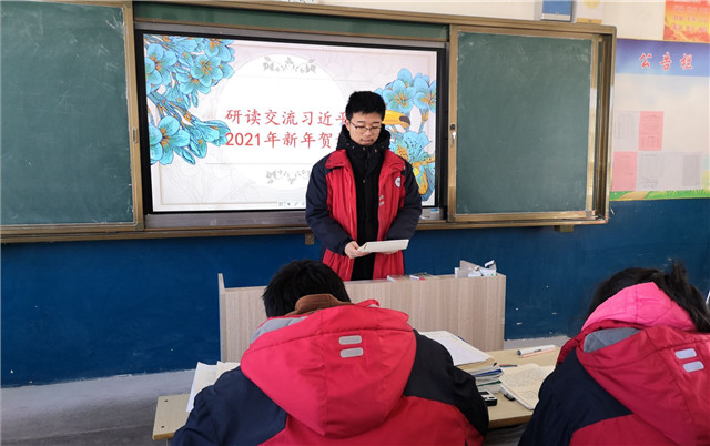 蒙城一中高一师生研读交流2021新年贺词 发布时间:2021-01-09 11:24:06 浏览次数: 次 字体:小 大 打印 分享到: 蒙城一中高一师生研读交流2021新年贺词为让学习关心时事,关注民生,增强历史使命感和社会责任感,2021年1月7日,南华学林文学社再次组织高一年级师生观看研读2021年习近平的新年贺词,师生们认真观看,积极发言,撰写观后心得。学生们聆听新年贺词,感悟伟大抗疫精神,鼓足脚踏实地加油干的学习劲头,牢记使命,继续奋斗,勇往直前,共同迎接2021年,脚踏实地,用自己的实际行动,迎接中国共产党百年华诞,创造更加灿烂的辉煌! 扫一扫在手机打开当前页