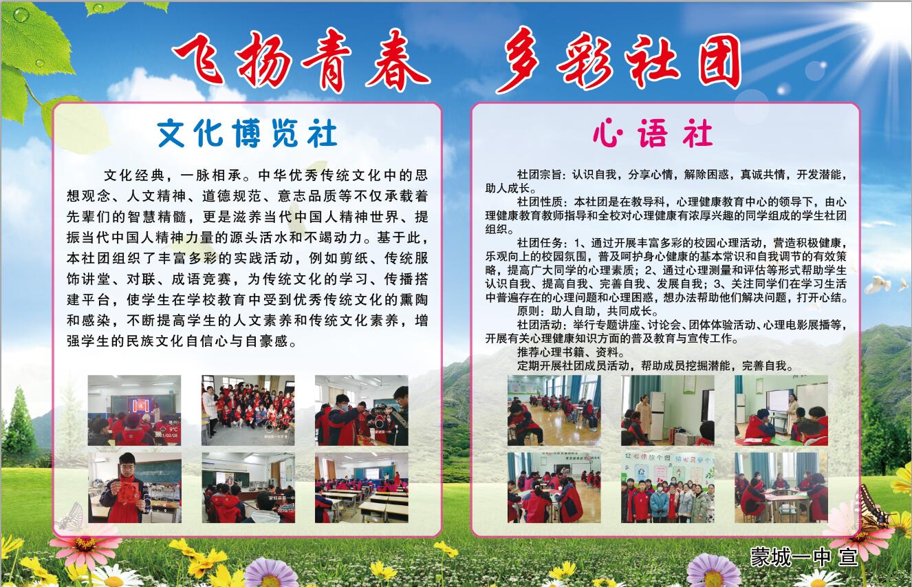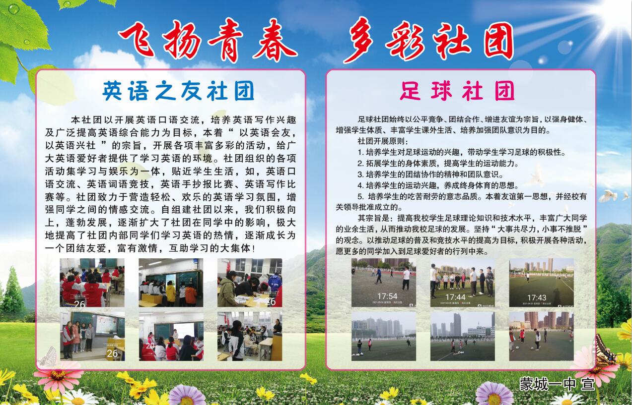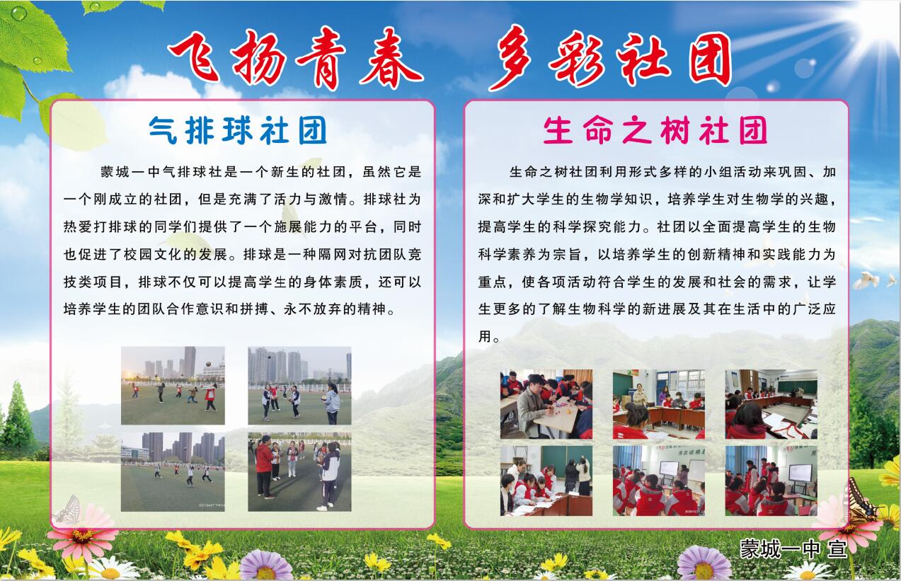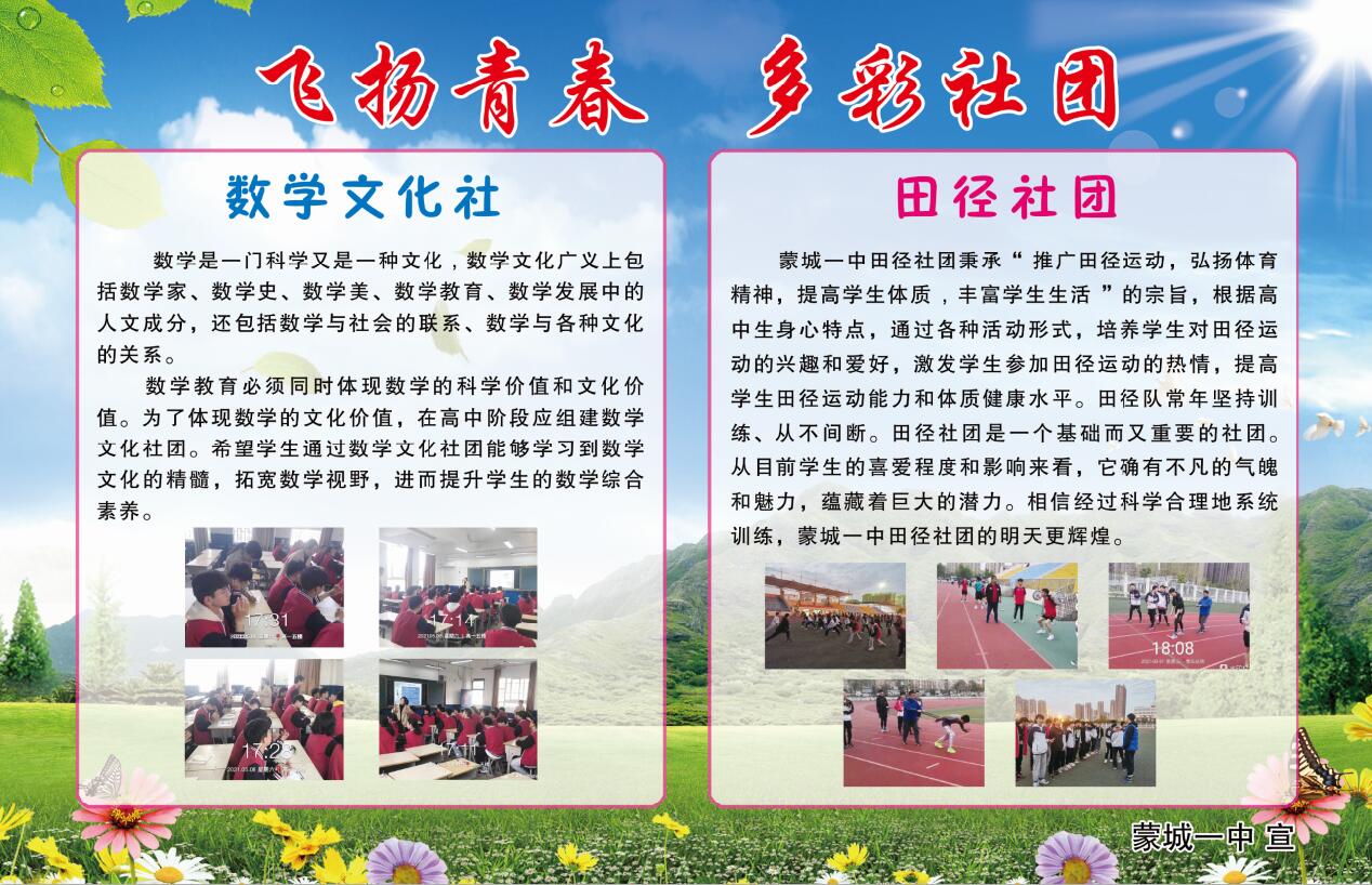 为了有效培养和提升同学们的“阳光自主”的品质,塑造和锻炼个人素质,蒙城一中涌现出了许多优秀社团和精品社团。他们组织有序、合理规划活动内容、同学们积极性高、参与度高、既收获了知识、开阔了视野、培养了兴趣、展示了自我。