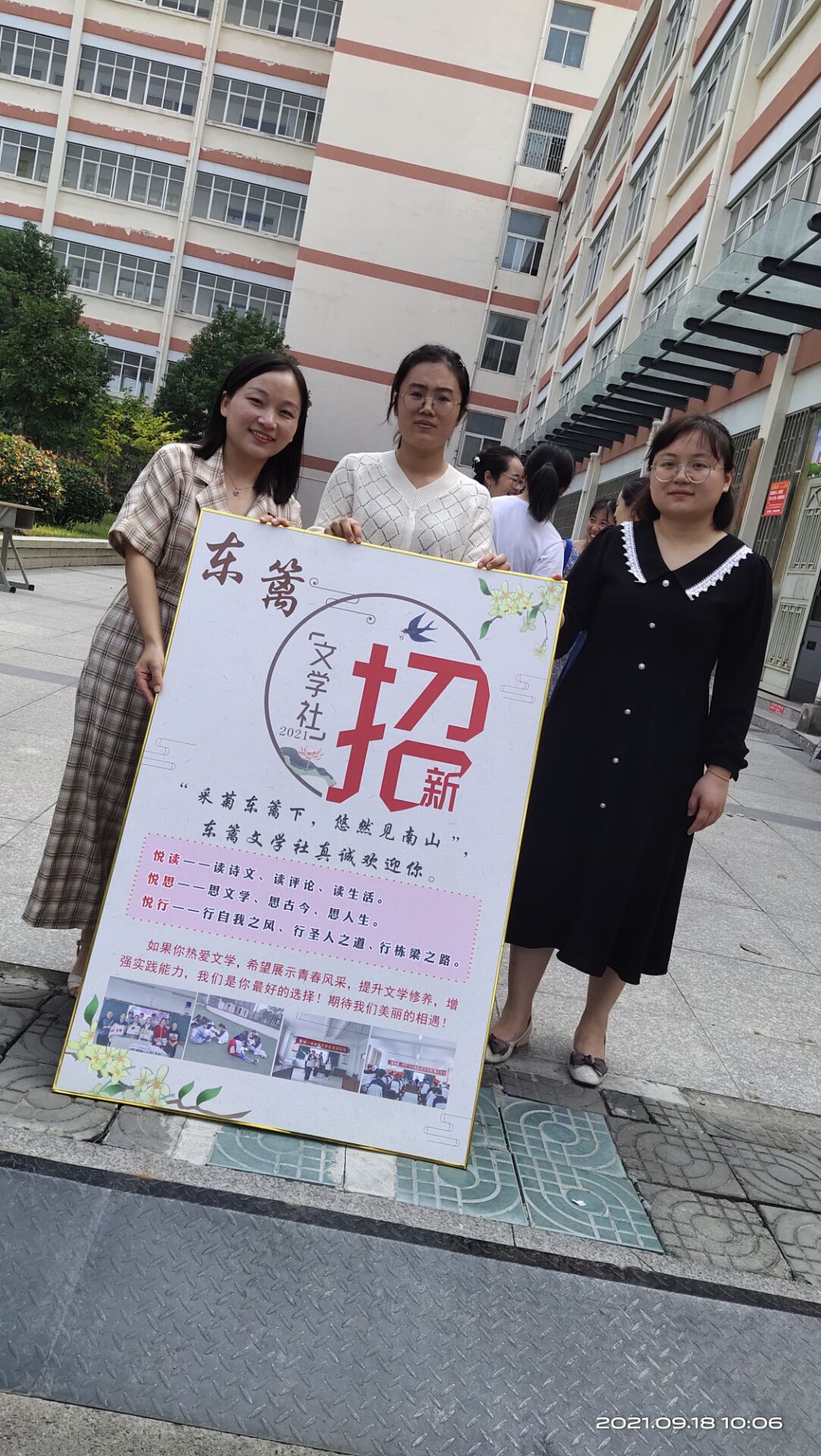 | 招贤纳士,为社团注入新鲜血液,吸纳更多文学爱好者,一起读书品诗,展青春风采,悟智慧人生,并借此扩大社团影响力。 | ||