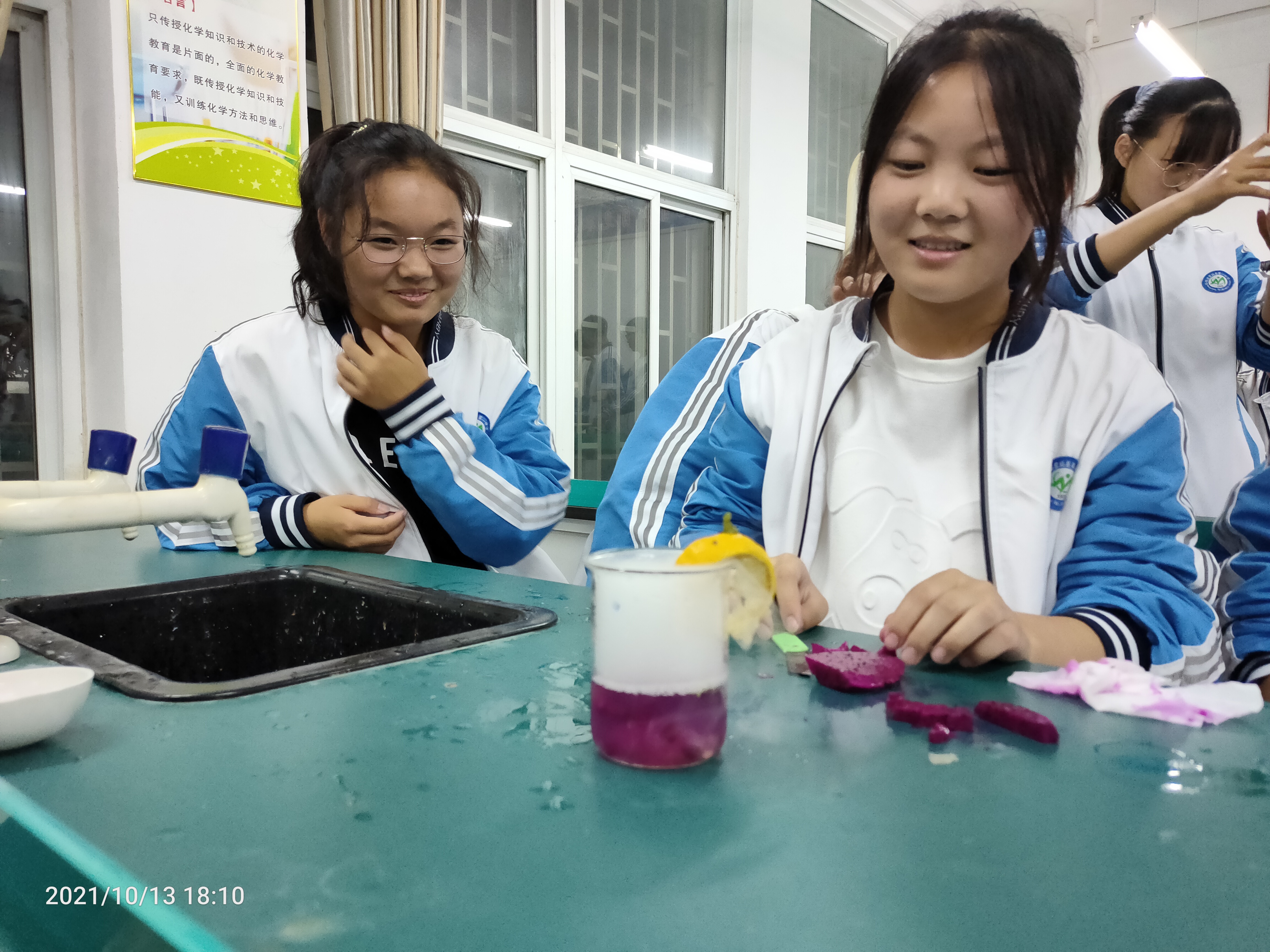 为了体现化学和生活实际的联系,拉近化学的社会感,让化学更好地服务社会的理念,元素吧社团在蒙城一中化学活动室开展“自制梦幻果汁”主题活动,元素吧四十余名成员参加了此次活动。