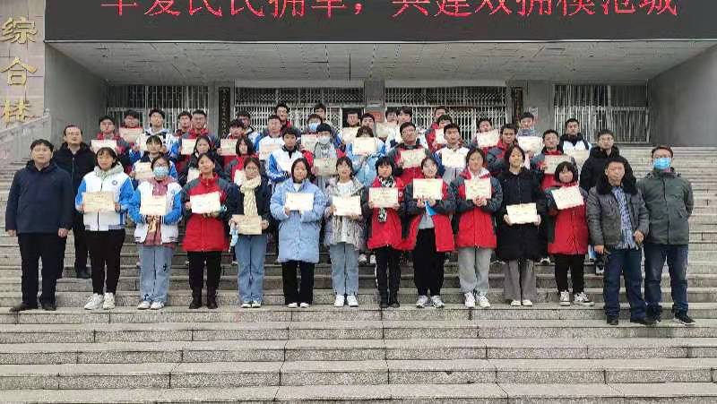 经过紧张的比赛,高一(2)马明娟、邓婷,高一(4)陈硕阳、桂敬鑫,高一(5)张佳音,高一(7)侯林浩,高一(10)冯子阳、戴妍等8位同学获得了一等奖;高一(9)曹雨璐、于祥凤,高一(11)史智文、陈卓,高一(12)陈悦、李鑫特,高一(13)王二壮、张启祥,高一(15)王谭一、马劲进、张宇阳、卢灿阳等12位同学获得了二等奖,其余参赛同学获得了三等奖,高一一部年级主任张全三与部分获奖学生合影。
