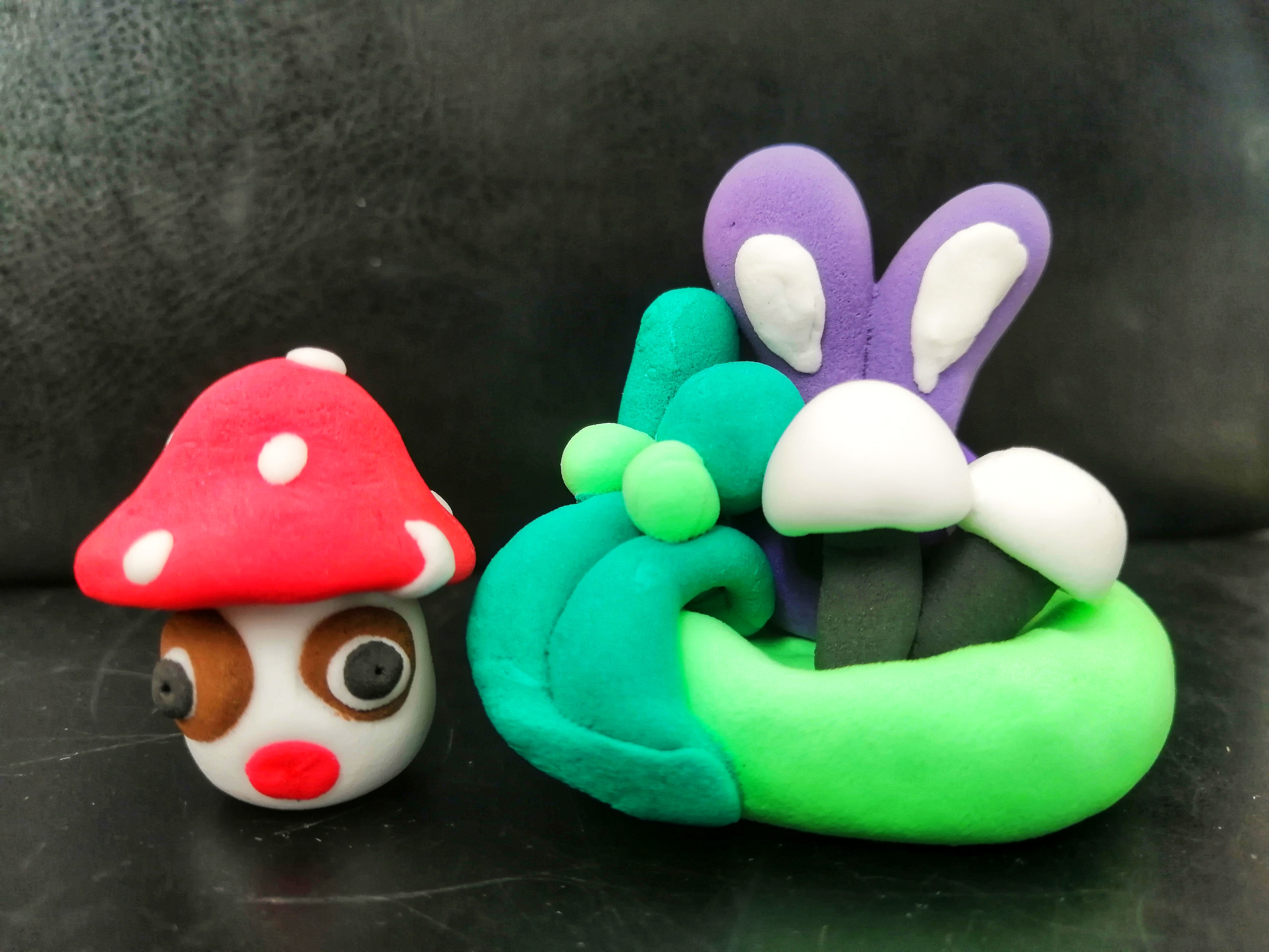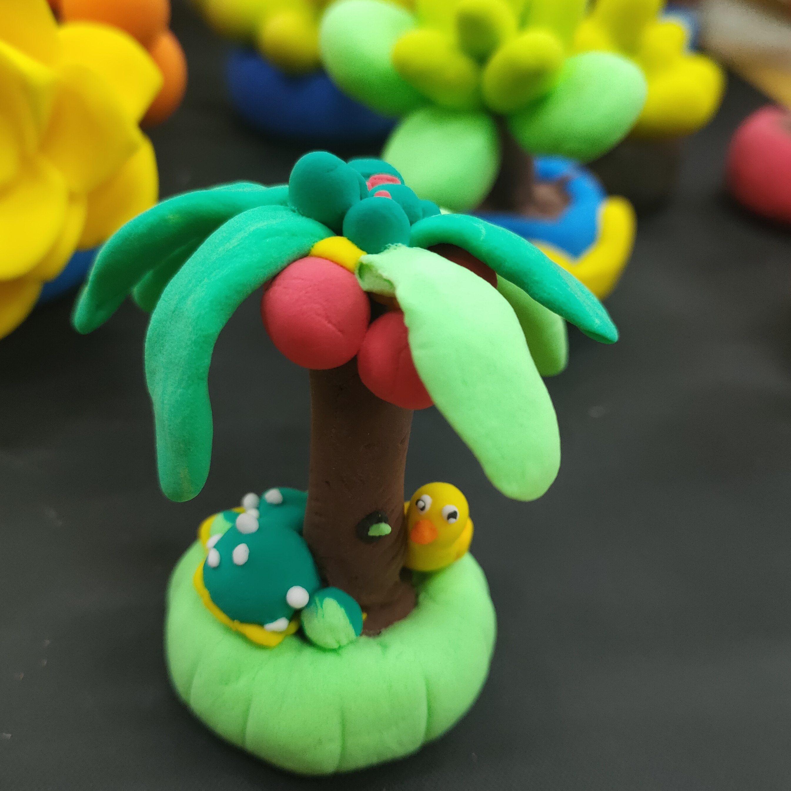 多肉植物制作完成后,同学们开始自由发挥,创作出其它的DIY作品,如椰子树、蘑菇小鸭子、兔子等。