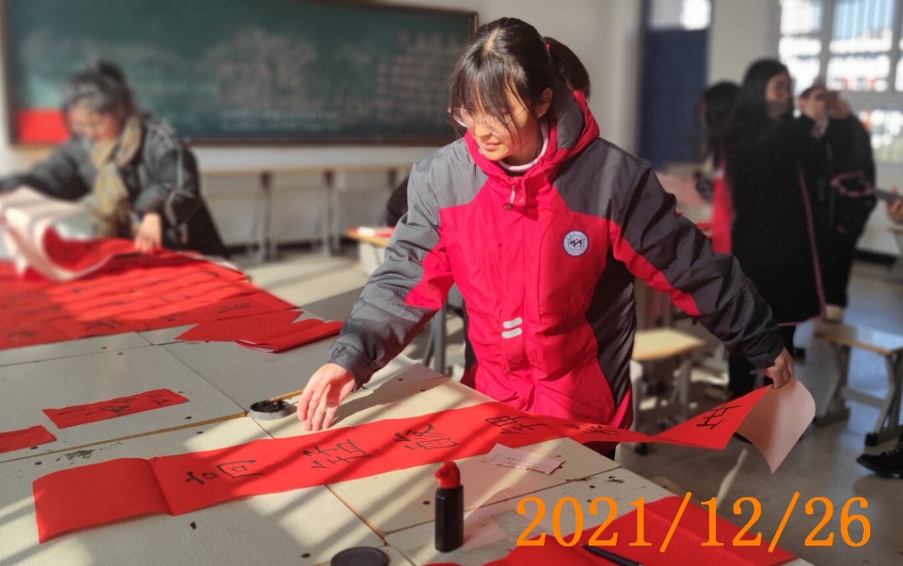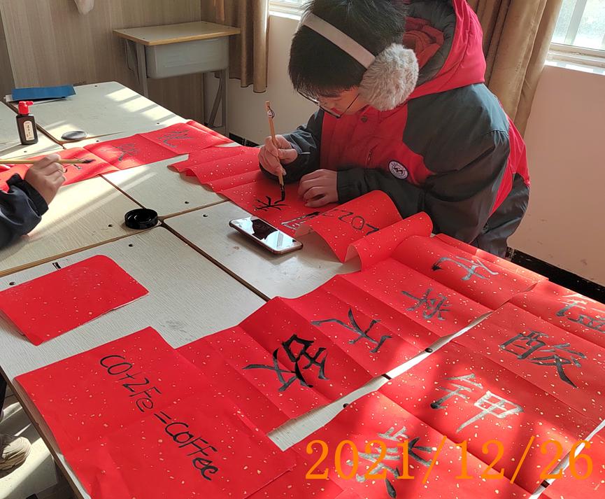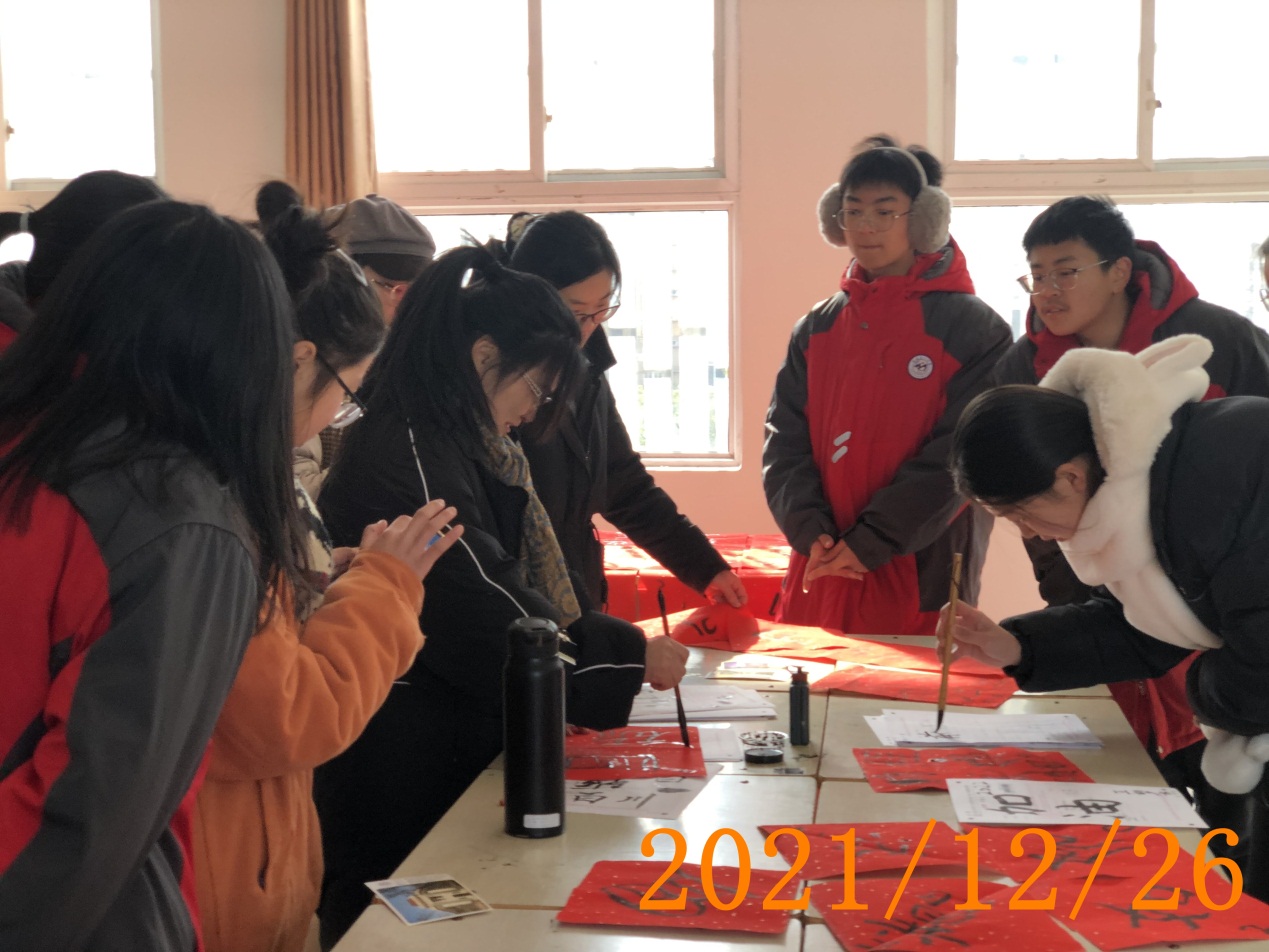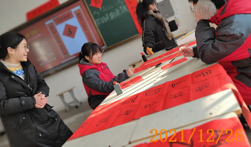 过程: 活动时间:上午9:00--11:00 1. 张慧林老师、王琳老师负责前期文案设计和物品准备,李慧敏老师负责学生组织工作。 2. 指导老师和后勤组学生刘海洋等布置教室,调试多媒体。 3. 学生签到。 4. 张慧林老师讲解春节习俗。 5. 学生创意写春联,活动展示。 6. 李慧敏、张燕、王琳老师负责拍照。