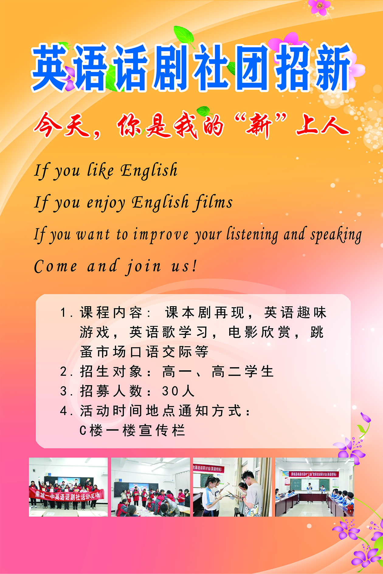 蒙城一中社团招新海报