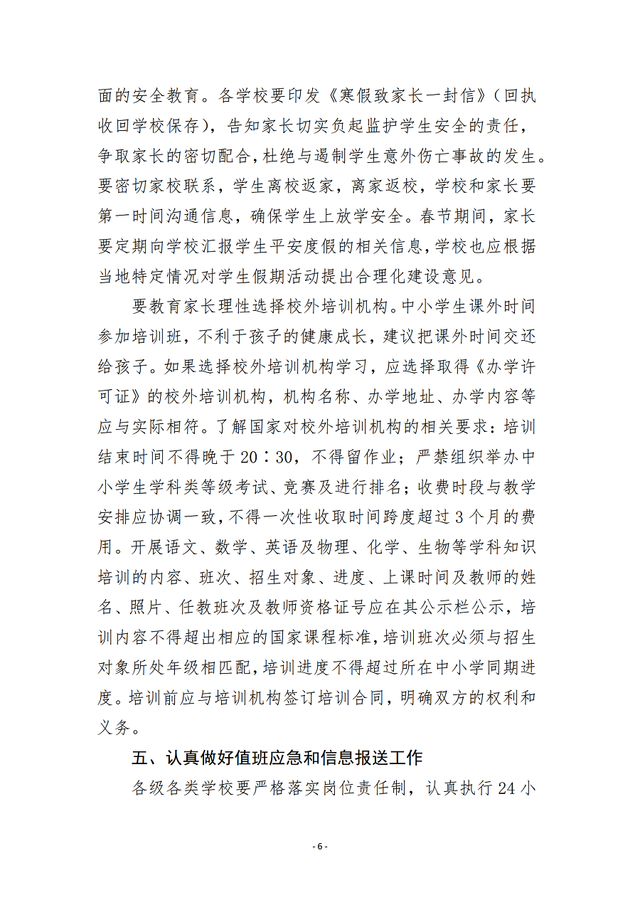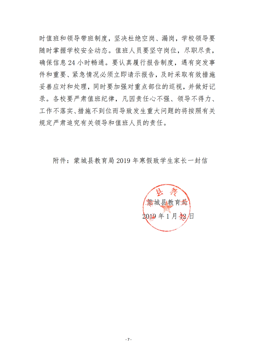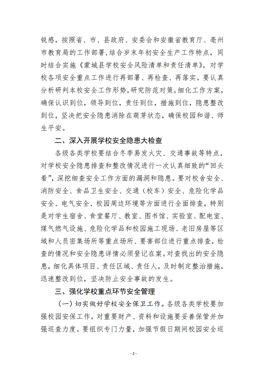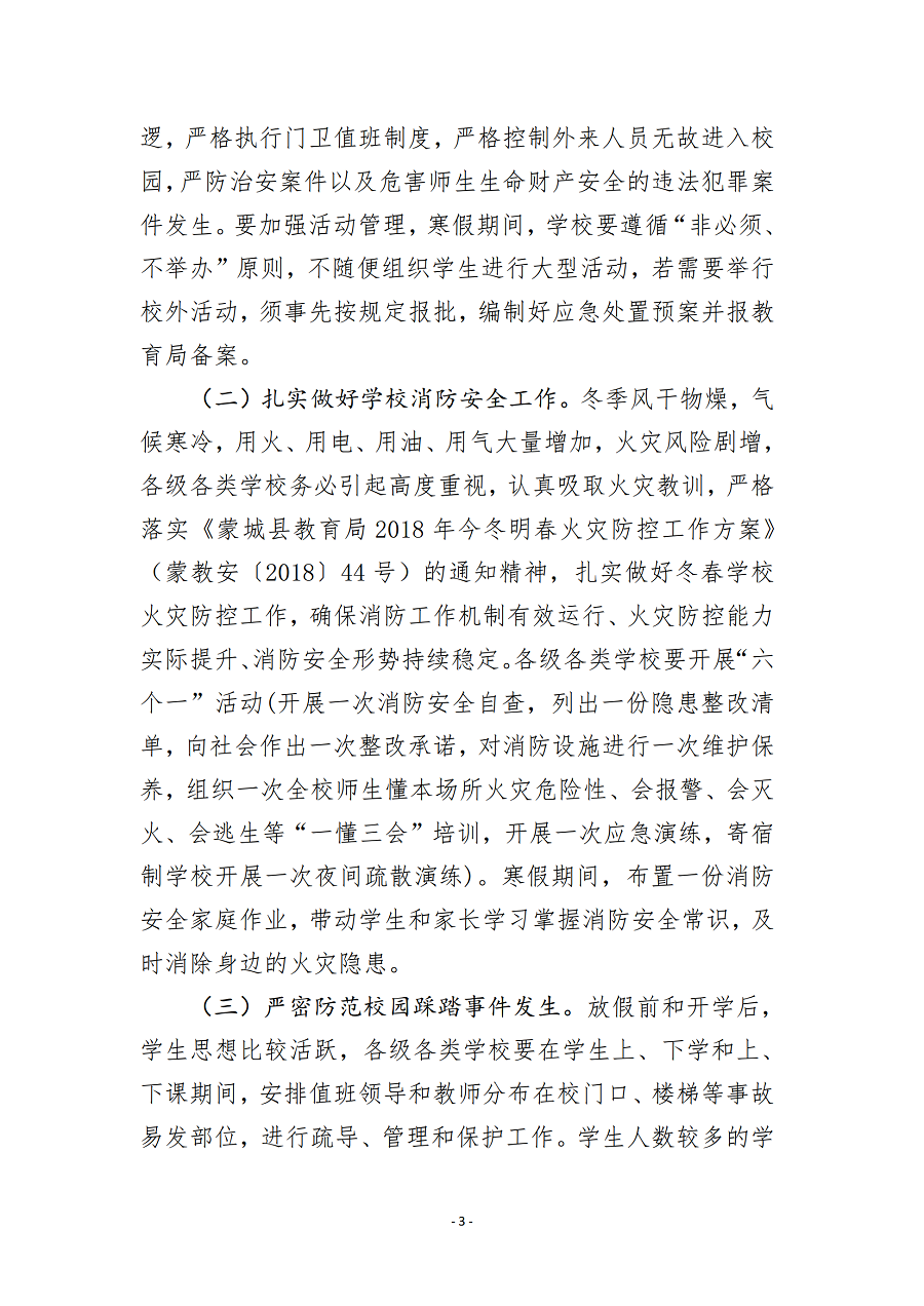 关于做好2019年寒假及春节期间学校安全工作的通知